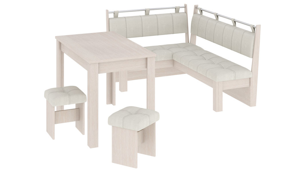 • Обеденная зона "Омега" состоит из удобной угловой скамьи, практичного стола и компактных табуретов.