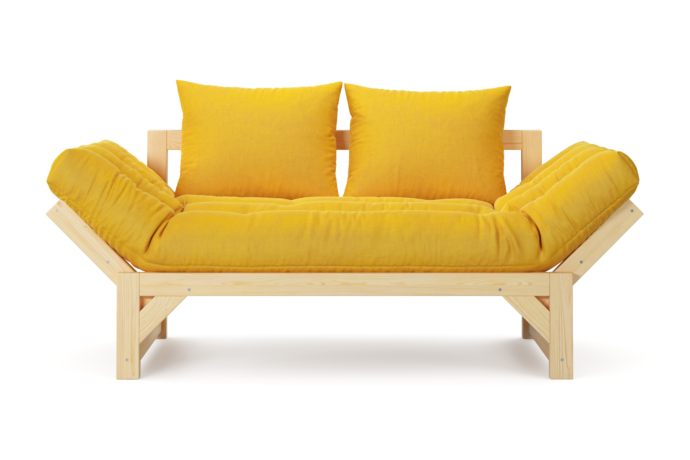 Максимальная нагрузка — 220 кг. Ширина деревянной спинки 130 см. Приспинные подушки, представленные на фото, входят в комплект. Декоративные приобретаются отдельно. Диван продается без лакокрасочного покрытия, под самостоятельную покраску. Высота сиденья без матраса - 31 см, с матрасом 46 см.